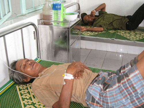 Trong quá trình ăn, cả 3 ông có uống 1 lít rượu trắng mua trong làng. Sau khi ăn xong thì có nhiều người bị đau bụng, nôn ói và tiêu chảy liên tục nhưng không có ai đến cơ sở y tế để chữa trị.