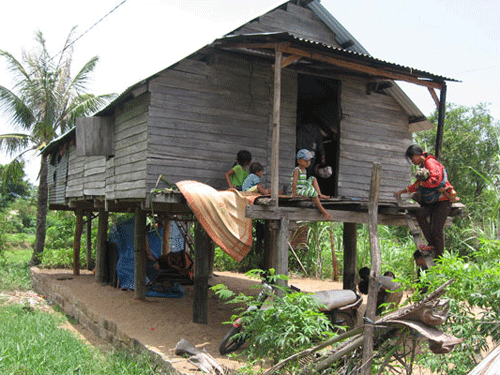 Dân làng kéo đến nhà để chuẩn bị làm đám tang cho ông Siu Pốt bị chết sáng 12-8 vì ăn thịt heo chết. Ảnh: Đức Phương