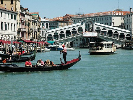 Đây là cây cầu cổ nhất bắc ngang qua Grand Canal ở Venice. Bạn có thể ngồi trong chiếc thuyền đáy bằng lững lờ trôi trên mặt nước màu lam phẳng lặng, mùi mì ống tươi lan tỏa khắp không gian... Venice luôn là điểm hẹn thơ mộng cho các đôi uyên ương, đặc biệt là địa điểm đẹp để cầu hôn.