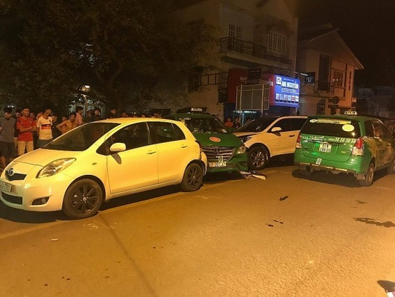 Ghi nhận của phóng viên tại hiện trường, 4 xe hơi "dính" vào nhau, 9 xe máy nằm rải rác bên cạnh. Các phương tiện này đều hư hỏng, nhiều mảnh vỡ văng tứ tung ra đường.