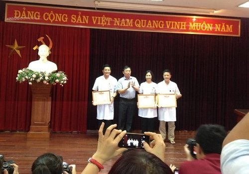 Trước việc làm cứu sống một phụ nữ nhiễm HIV bị băng huyết của 18 y bác sĩ và 1 sinh viên học việc của Bệnh viện Phụ sản Hà Nội, Cục Quản lý Khám chữa bệnh, Cục Phòng chống HIV/AIDS (Bộ Y tế) và Sở Y tế Hà Nội đã có quyết định khen thưởng đột xuất toàn bộ kíp trực ngày 4/7/2015.