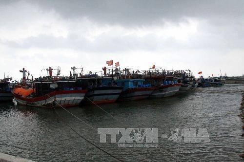 Người dân Huế neo đậu tàu thuyền tránh trú bão (Ảnh: Quốc Việt/TTXVN)