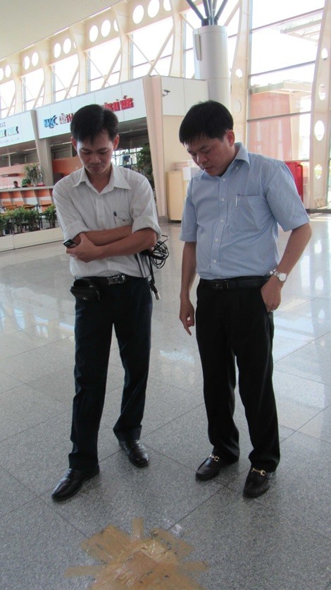 Ổ cắm điện dưới nền nhà ở nhà ga đi được dán lại sau sự cố xảy ra vào chiều ngày 9/7. Tuy nhiên, với tầm cỡ là một sân bay quốc tế, cách làm này rất mất thẩm mỹ và để lại hình ảnh không đẹp đối với hành khách. Ảnh Đức Hoàng