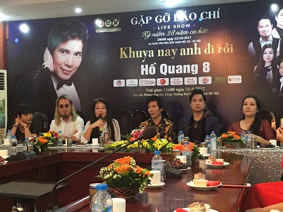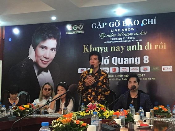 Chiều 26/9, tại Hà Nội, họp báo liveshow “Khuya nay anh đi rồi” kỉ niệm chặng đường 28 năm ca hát của ca sĩ Hồ Quang 8 đã diễn ra với sự tham dự của nhiều anh chị em nghệ sĩ, bạn bè thân thiết và phóng viên báo đài.