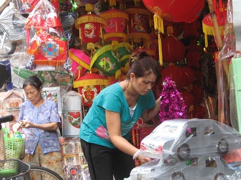 Gần Rằm tháng Bảy, những ngày chính giữa mùa báo hiếu Vu Lan, con phố bán hàng mã dài hơn một cây số ở phố Hàng Mã, Q. Hoàn Kiếm, TP Hà Nội nườm nượp người từ 5g sớm đến 11g đêm. Hầu hết các cửa hàng bán đồ phục vụ người cõi âm của phố nhộn nhịp, nườm nượp người mua bán. Một điều dễ thấy là trong tất cả các cửa hàng chỗ nào cũng tràn ngập những đồ hàng mã thời @, từ xe SH, Dilan, ô tô BMW, máy nghe nhạc, laptop thậm chí cả những điện thoại di động đời mới nhất Iphone, Samsung…Đặc biệt hơn, cửa hàng nào cũng có sẵn nhân viên đứng cửa tư vấn cho người mua: Người đã mất thuộc giới tính gì, trước làm công việc nào, sở thích ra sao nên dùng loại hàng nào thì phù hợp. Tất cả các đồ hàng mã đều được niêm yết giá hẳn hoi: Xe máy, ô tô giá 100.000đồng, biệt thự hai tầng giá 50.000 đồng, ba tầng giá 80.000 đồng, các đồ hàng mã sành điệu thì mỗi thứ một giá nhưng cao hơn gấp 2, 3 lần. Mua đủ trọn bộ các đồ trên kèm hàng “sành điệu” phải mất từ 1 -1,5 triệu đồng.