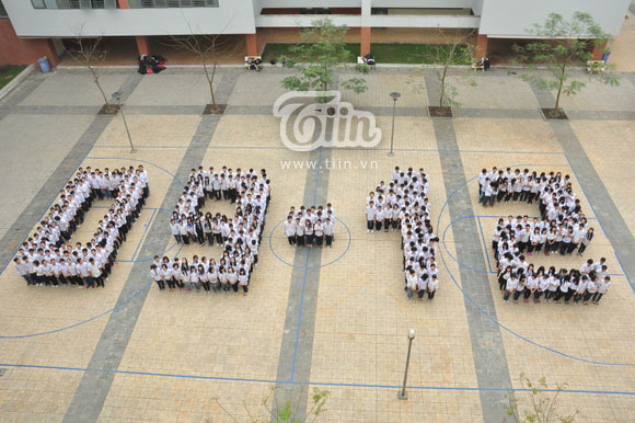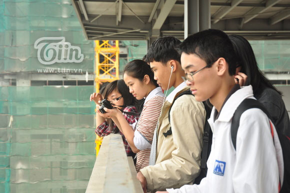 Các Amser đứng ngắm đội hình xếp chữ từ tầng 4