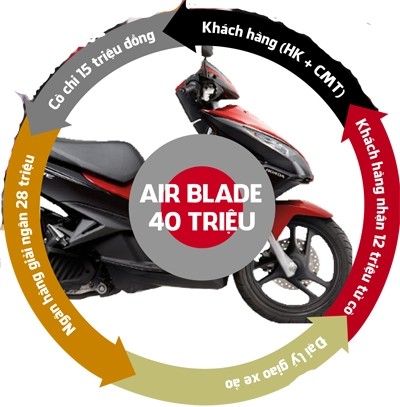 Anh C. là người trực tiếp lên thị trấn Xuân Mai (huyện Chương Mỹ) để làm các thủ tục lấy tiền. “Khi đến trực tiếp cửa hàng, nếu tôi đăng ký mua chiếc xe Air Blade trị giá khoảng 40 triệu đồng, mọi thủ tục đều được cò lo liệu, tôi chỉ phải ký hợp đồng tín dụng với ngân hàng.