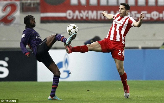 Với ưu thế sân nhà, Olympiacos đã nhập cuộc rất tự tin trước đội hình gồm toàn cầu thủ dự bị của Arsenal. Phút 11, Abdoun (93-Olympiacos) đột phá bên hành lang cánh trái rồi nỗ lực căng ngang vào trong vòng cấm nhưng Vermaelen (5-Arsenal) đã kịp phá bóng giải nguy trước đà băng vào của Djebbour (10-Olympiacos).