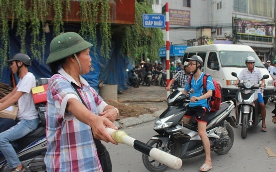 Bà bán nước 62 tuổi đội mũ cối, đi dép tổ ong hơn 10 năm "chống ùn tắc" ở Hà Nội khiến nhiều người cảm phục.