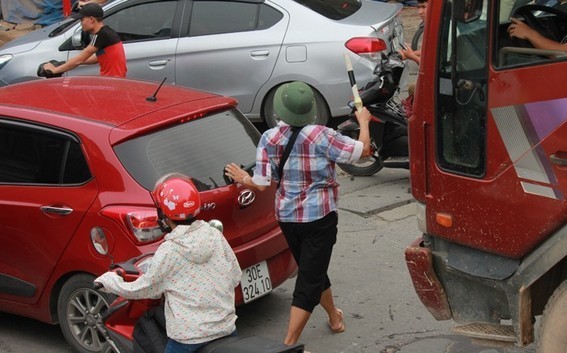 Đó là bà Nguyễn Thị Tiến (62 tuổi) bán nước ở ngã tư Cống Mọc - Quan Nhân (Hà Nội). Bà Tiến cho biết mình đã phân làn được hơn... 10 năm.