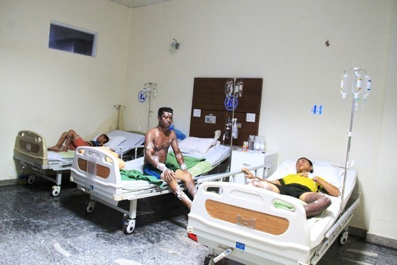 Hiện sức khỏe của 2 cháu nhỏ đã ổn định, riêng anh Hưng bị bỏng toàn thân, khó thở và đau phần ngực, bụng.