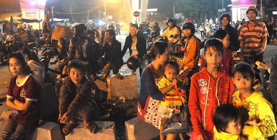 Người dân Bắc Trà My hoảng hốt đổ ra đường vì sợ động đất. Ảnh: Tuổi Trẻ