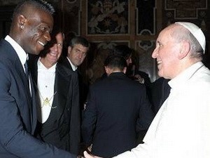 Balotelli gặp gỡ Giáo hoàng Francis tại Vatican. (Nguồn: AP)