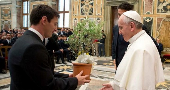 Messi diện kiến Giáo hoàng. (Nguồn: Reuters)