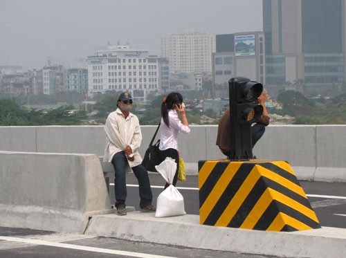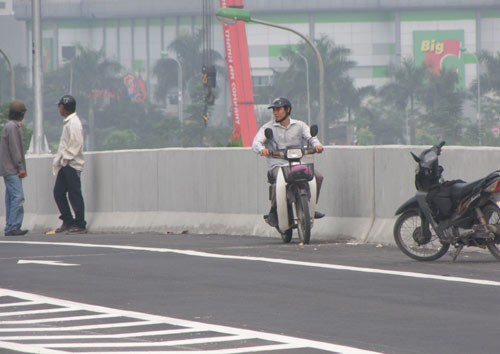 Dù vậy, sau 2 ngày thông xe, Thanh Niên Online ghi nhận không ít xe máy vẫn “mát ga” chạy trên tuyến đường bộ trên cao dành riêng cho ô tô. Anh Nguyễn Đức Nhân, nhà ở mặt đường Nguyễn Xiển (Q.Thanh Xuân, TP.Hà Nội) cho biết, sau lễ thông xe, mỗi lần lên tầng thượng phơi quần áo đều thót tim khi chứng kiến cảnh những chiếc xe máy phóng như bay xe lẫn với ô tô.