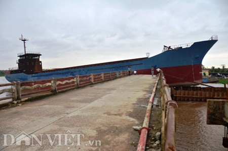 Sau hai cú đâm liên tiếp của hai chiếc tàu trọng tải hơn 2000 tấn, hơn 10 mét thân cầu Diêm Điền (huyện Thái Thụy, tỉnh Thái Bình) bị đâm nát, hất tung xuống sông.