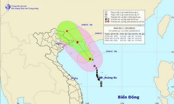 Dự báo trong 24 giờ tới, bão di chuyển theo hướng Tây Bắc, mỗi giờ đi được khoảng 10 -15km. Như vậy khoảng gần sáng ngày (23/6), vùng tâm bão sẽ đi vào vùng biển phía Đông Bắc vịnh Bắc bộ. Đến 19 giờ ngày 23/6, vị trí tâm bão ở vào khoảng 21,4 độ Vĩ Bắc; 108,6 độ Kinh Đông, cách Móng Cái (Quảng Ninh) khoảng 100km về phía Đông. Sức gió mạnh nhất ở vùng gần tâm bão mạnh cấp 8 (tức là khoảng từ 60 đến 75km một giờ), giật cấp 9 - 10.