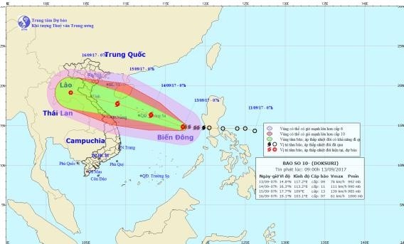 Hồi 7 giờ sáng nay (ngày 13/9), vị trí tâm bão số 10 ở vào khoảng 14,8 độ Vĩ Bắc; 117,2 độ Kinh Đông, cách quần đảo Hoàng Sa khoảng 580km về phía Đông Đông Nam. Sức gió mạnh nhất ở vùng gần tâm bão mạnh cấp 9 (75 đến 90 km/giờ), giật cấp 12.