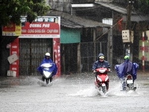 Mưa lớn gây ngập trên các tuyến phố. (Ảnh: Trọng Đạt/TTXVN)