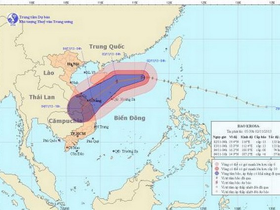 Hồi 4 giờ ngày 2/11, vị trí tâm bão ở vào khoảng 19,4 độ Vĩ Bắc; 116 độ Kinh Đông, cách quần đảo Hoàng Sa khoảng 510km về phía Đông Đông Bắc. Sức gió mạnh nhất vùng gần tâm bão mạnh cấp 12, cấp 13 (từ 118 đến 149 km/giờ), giật cấp 14, cấp 15.