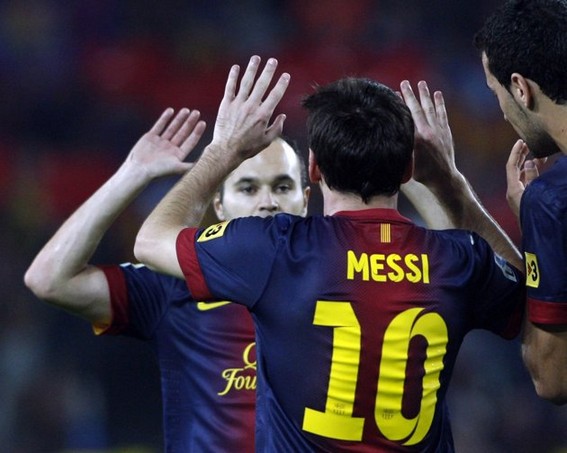 Barca: Victor Valdes; Dani Alves, Javier Mascherano, Adriano, Jordi Alba; Xavi Hernandez, Andres Iniesta, Sergio Busquets; Cesc Fabregas, Lionel Messi, Pedro Rodriguez.