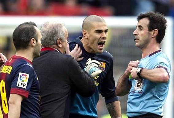 Sau khi ông Perez thổi còi kết thúc trận Kinh điển, Valdes đã nhảy bổ đến vị trọng tài này và nói như hét lên "ông là đồ không biết nhục". Ông Perez rút thẻ vàng cảnh cáo Valdes nhưng thủ môn của Barca không dừng lại. Kết quả: Perez rút chiếc thẻ thứ 2, đồng nghĩa với thẻ đỏ. Valdes vẫn chưa bớt "nóng đầu". Khi Diego Lopez chạy đến can ngăn, thủ thành này thậm chí còn hất tay người đồng nghiệp ra.