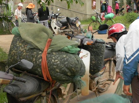 Một địa điểm thu gom cua đồng bắt bằng thuốc sâu ở xã An Thủy, Lệ Thuỷ, Quảng Bình.
