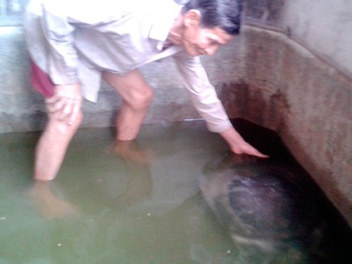 Mấy ngày qua, tại gia đình ông Lê Văn Lựu, ở ấp Phú Trí A, xã Phú Tân, huyện Châu Thành, Hậu Giang, luôn có hàng chục lượt người dân hiếu kỳ đến xem con cua đinh (ba ba) có trọng lượng 31,5kg được ông nuôi giữ cẩn thận trong gia đình.