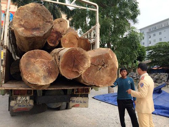 Vào lúc 5h sáng ngày 14/12, tại km số 25 tuyến đường Nghi Sơn - Bãi Trành, tổ Tuần tra kiểm soát số 2, Phòng CSGT đường bộ, đường sắt, Công an Thanh Hóa do Đại úy Lê Đức Thắng - Phó đội trưởng đội làm tổ trưởng đã phát hiện và bắt giữ 2 xe tải chở gỗ táu đỏ không có giấy tờ hợp lệ.