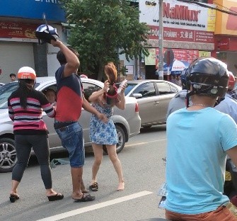 Khi chị Hà bước xuống xe để nói chuyện thì bị Tâm cầm mũ bảo hiểm đánh mạnh vào đầu gây thương tích. Ảnh: Xuyến Chi