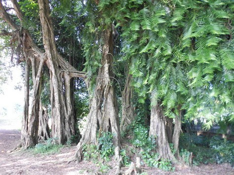 Những nhánh, thân cây to vài người ôm quấn lại với nhau tạo nên dáng vẻ đặc biêt kỳ vĩ của cây sanh Suối Cốc.