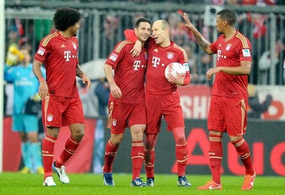 Ngay trong hiệp một, các cầu thủ của đội bóng xứ Bavaria đã kịp làm thủng lưới Hamburg tới 5 lần, Các bàn thắng được thực hiện do công của Xherdan Shaqiri, Bastian Schweinsteiger, Arjen Robben và một cú đúp của tiền đạo người Peru Claudio Pizarro.