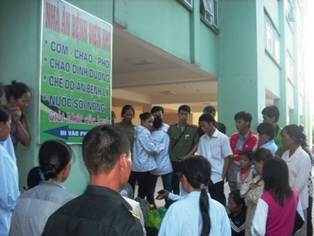 Cho rằng các y, bác sỹ ca trực tắc trách trong việc thay băng nên rất đông người nhà bệnh nhân đã “vây” bệnh viện để làm rõ nguyên nhân tử vong của cháu.
