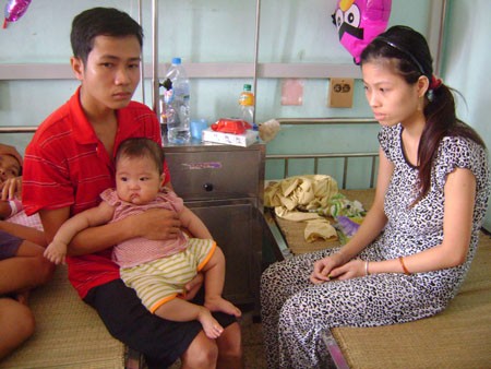 Gia đình cháu Đinh Minh Phương vẫn chưa hết lo âu (chụp tại Bệnh viện Nhi T.Ư chiều 2.10).