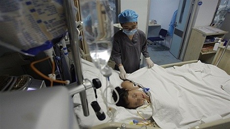 Bé gái được điều trị tại khoa chăm sóc đặc biệt của một bệnh viện thành phố Tây An