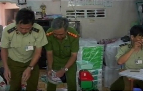 Trong quá trình khám xét tại hiện trường cho thấy, cơ sở này chuyên sản xuất các loại hàng nhái như: Bột giặt mang nhãn hiệu Omo, bột giặt Aba, bột ngọt Aji-no-moto, giấy vệ sinh hiệu Sài Gòn, trà Bắc Thái Nguyên.