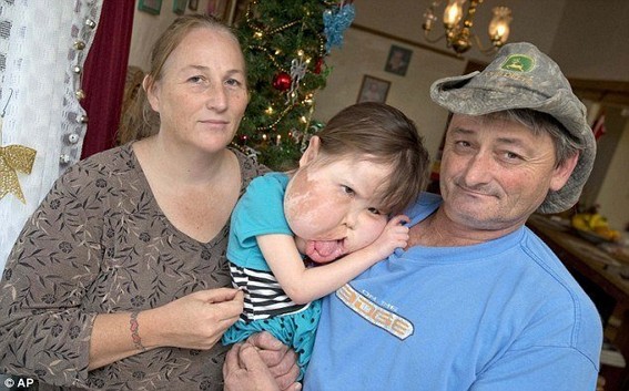 Katie Renfroe, 4 tuổi, là đứa con thứ 6 trong 8 đứa con của ông bà Angie và Danial Renfroe ở Paxton (Anh). Nhưng Katie không may mắn bị mắc hội chứng mắc hội chứng phì đại não bẩm sinh do đột biến gen, khiến một số bộ phân trên mặt của cô bé to bất thường.