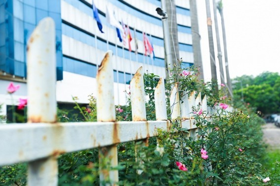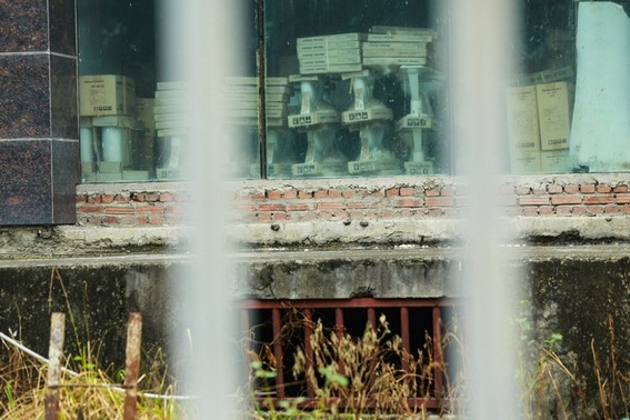 Qua những chấn song sắt hoen rỉ là công trường với hệ thống máy móc cũ kĩ.