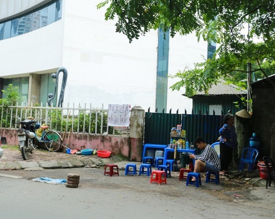 Xung quanh bệnh viện hiện đang được "biến tướng" trở thành một quán nước vỉa hè, bãi để xe, bãi rác... Theo người chủ quán nước chia sẻ, "tôi bán trà đá ở đây từ thời điểm bệnh viện còn đang xây dựng, tuy nhiên giờ chỉ còn vài người bảo vệ chứ chẳng còn công nhân nữa nhưng vẫn tranh thủ ngồi bán nước".