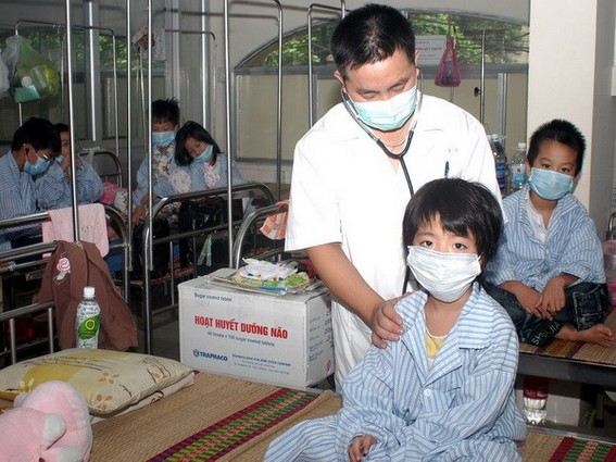 Điều trị cho trẻ em mắc cúm A/H1N1 tại Khoa lây, Bệnh viện đa khoa Xanh Pôn. (Ảnh: Hữu Oai/TTXVN)
