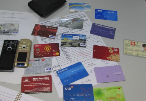Qua khám xét nơi ở của Đức và Đại, cảnh sát thu giữ 1 laptop, 7 CMTND có dấu hiệu làm giả, 3 sim điện thoại, 3 thẻ ngân hàng, 6 ảnh 2x3 dùng để làm giả CMTND.