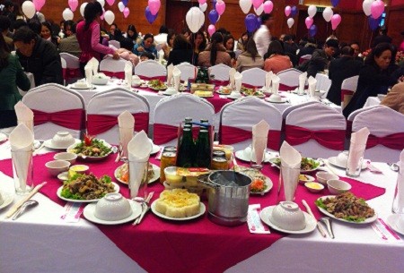 Theo anh Trần Tường - phòng Kinh doanh khách sạn Phụ nữ (Thụy Khuê, Hà Nội) thì, hầu hết giá mâm cỗ cưới năm nay đều tăng từ 15 - 20%. Một mâm cỗ 6 người, hiện nay giá trung bình từ 1,8 đến trên 2 triệu đồng. Đặc biệt, ngày càng nhiều gia đình không chọn đặt mâm 10 (10 người/mâm) do khi so sánh chi phí, giá mỗi suất vẫn không hề giảm, xếp khách ngồi mâm khó hơn. Bác Minh (Thụy Khuê, Hà Nội) cho biết, với mức giá đặt mâm cỗ trung bình thôi, thì tiền mừng cũng khoảng 400.000 đồng/người mới mong “hòa vốn”. Sau khi tham khảo thực đơn, hầu hết đồ ăn đều là những món trở thành "bài ca đi cùng năm tháng" của các tiệc cưới như: Tôm chiên muối ớt, rau cải xào, gà luộc... Còn nếu muốn độc đáo hơn, người đặt phải chi phí không dưới 2,5 triệu đồng/mâm, chưa kể đồ uống. Nếu xài rượu "xịn" ngoại, giá còn "chát" hơn nữa. Lo ngại về nguy cơ bị lỗ khi tổ chức đám cưới ở nhà hàng, khách sạn lớn, bác Minh quyết định về nhà dựng rạp và thuê người nấu cỗ, tổ chức cưới cho con trai.