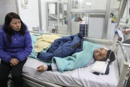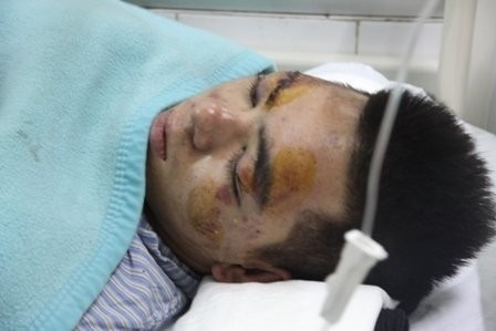 Em Thái Duy Mạnh đang được gia đình cấp cứu tại viện Xanh Pôn sau đêm bị đám thanh niên lạ mặt đánh hội đồng.
