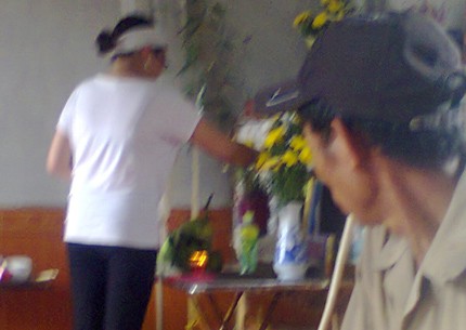 Con gái bà Thái đang thắp hương trước hương án của mẹ. Ảnh: T.G