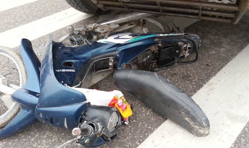 Sau khi xảy ra va chạm, người phụ nữ điều khiển xe máy bị chiếc xe tải cuốn vào gầm và cán ngang qua người.