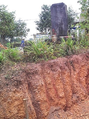 Việc bạt đồi, cải tạo mặt bằng xây nhà ở đang đẩy bia cổ lăng vua Tự Đức vào tình trạng nguy ngập. Ảnh: Ngọc Văn.
