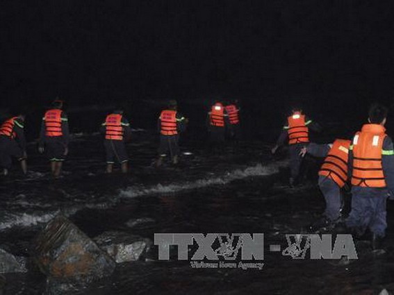 Lực lượng cứu hộ tìm kiếm các nạn nhân. (Ảnh: TTXVN)