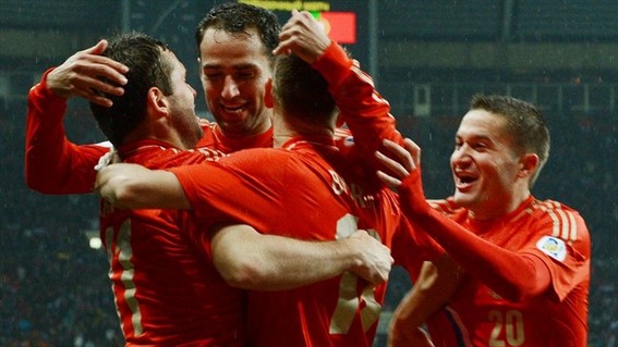 Nga: Igor Akinfeev; Aleksandr Anyukov, Vassili Berezoutski, Sergei Ignashevich, Dmitri Kombarov; Igor Denisov, Roman Shirokov, Viktor Faizulin, Alan Dzagoev, Vladimir Bystrov; Aleksandr Kerzhakov, Aleksandr Kokorin.