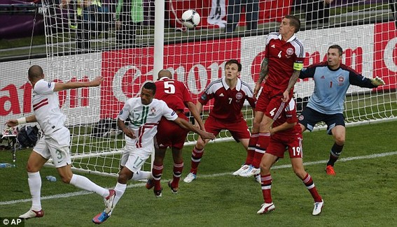 Bỏ lỡ quá nhiều cơ hội ghi bàn, Bồ Đào Nha đã phải trả giá đắt. Phút 80, Jacobsen thực hiện pha lật cánh như đặt cho Bendtner bật cao đánh đầu hạ gục Rui Patricio, quân bình tỷ số cho Đan Mạch.