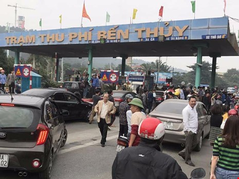 Người dân tập trung phản đối việc thu phí tại Trạm thu phí Bến Thuỷ